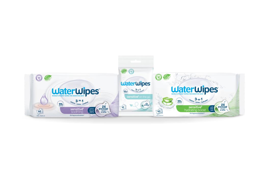 Proporcionan los beneficios de WaterWipes Original además de potenciar la hidratación de la piel durante la limpieza. Suaves con la piel delicada.