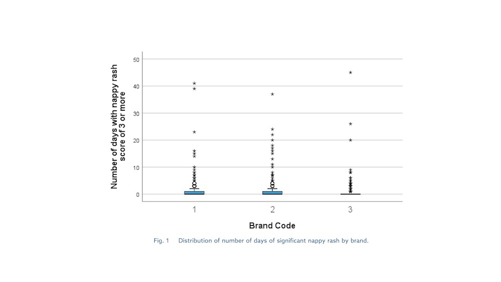Since it was not possible to conceal the brands received from participants, the possibility that participants' observations of diaper rash (DPR) were biased by perceptions or prior experiences with wipe brands is acknowledged. Measurement error, as a source of bias, was reduced by using real-time (rather than retrospective) reporting of DPR. The vast majority of those eligible for the study (97%) were retained and analyzed, and all participants contributed 55 days of continuous daily observations of their infants' skin condition. This high retention and protocol compliance rate was attributed to two factors: incentives in the form of free diapers and wipes, and the ease of use of the smartphone app, which reminded parents to submit daily observations and was simple and quick to use. The use of daily reports from mothers was innovative, providing some important benefits. Previous studies in the UK on diaper rash have relied on a single retrospective survey of parents,4,5 or on a single or repeated assessment by a medical professional.11 Although there have been studies with significantly larger sample sizes,6 no other study has carried out this level of data collection for a large sample of infants. Mothers were able to report on diaper rash daily, in real time, via a user-friendly interface on their smartphone, which contained reference charts for assessing IDD on a five-point scale. This allowed mothers to reflect daily on their baby's skin condition and cleaning routines using real-time data collection methods, which are known to be more accurate than retrospective methods.18 This has resulted in an IDD dataset that, to the authors' knowledge, is the most comprehensive to date for younger infants. The lack of direct professional involvement, including visits to clinics, may have helped retain participants, contributing to the high study completion rate.